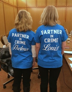 Ginger recalls that at the end of planning the ball, “Jan Strimple, who was involved in the production of the event, greeted us at one meeting with, ‘It’s Thelma and Louise!,’ and it stuck. At the last ball rehearsal, we wore t-shirts with Thelma and Louise printed on them. We don’t need to wear nametags anymore!”